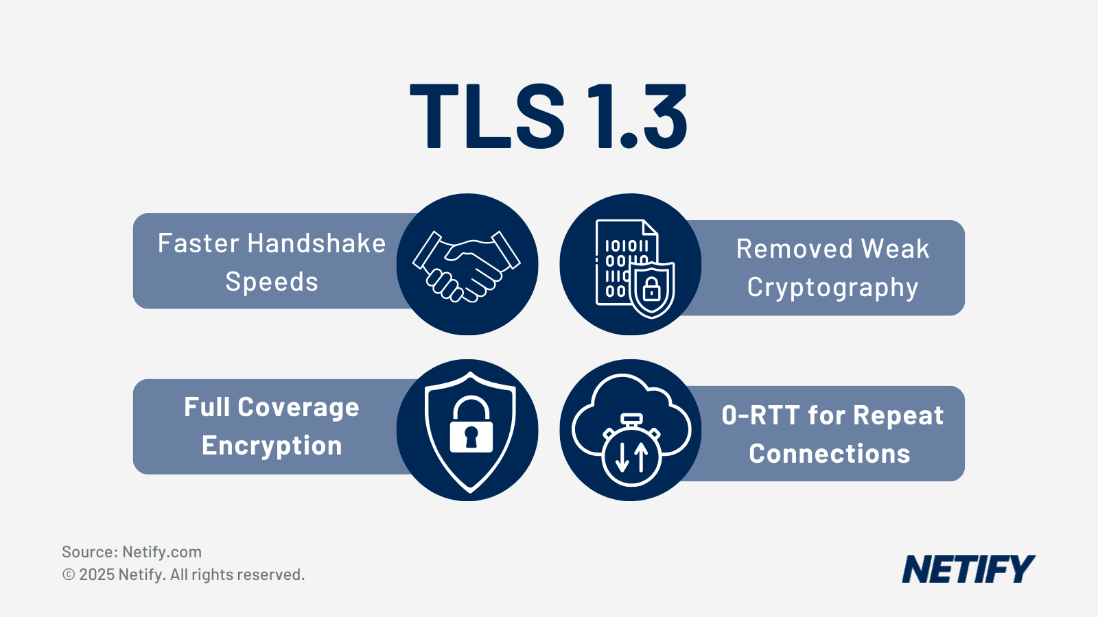 Why You Must Ask This: TLS 1.3 is the current encryption standard and represents almost 70% of encrypted web traffic in 2025. The reasons for its uptake (including zero round-trip time, ECH and session resumption) are all features designed to improve performance and privacy, but they're also designed specifically to prevent inspection.